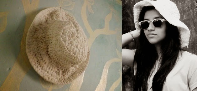 Chapéu - Esse chapéu é feito de T.N.T que foi cortado em tiras finas para poder ser feito com agulha de crochê